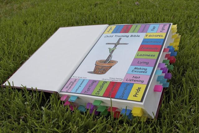 With 2013 now here, I’ve decided to blog a little more and organize my time a little better. Putting the Child Training Bible kit together (or completing it, actually) is on the TOP of my ‘to-do’ list. We have our scriptures highlighted and our charts in place, but I haven’t had a chance to get the tabs yet, therefore, I have no completed photo of our CTB 🙁 So sad. Staples did not have them this weekend!! So my plans were no beuno this weekend (it would be best to order them online when you order your kit, they are hard to find around my area for some reason — the value pack).